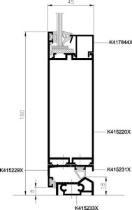 Komstrukční hloubka rámu 45 mm a křídla 54 mm (v případě okna) nebo 45 mm a 45 mm (v případě dveří) umožňuje tvorbu elegantních dělících stěn, posuvných dveří, vitrín a dalších prostorových konstrukcí. Díky takto zvoleným konstrukčním hloubkám lze dosáhnout elegantního efektu jednolitého povrchu.